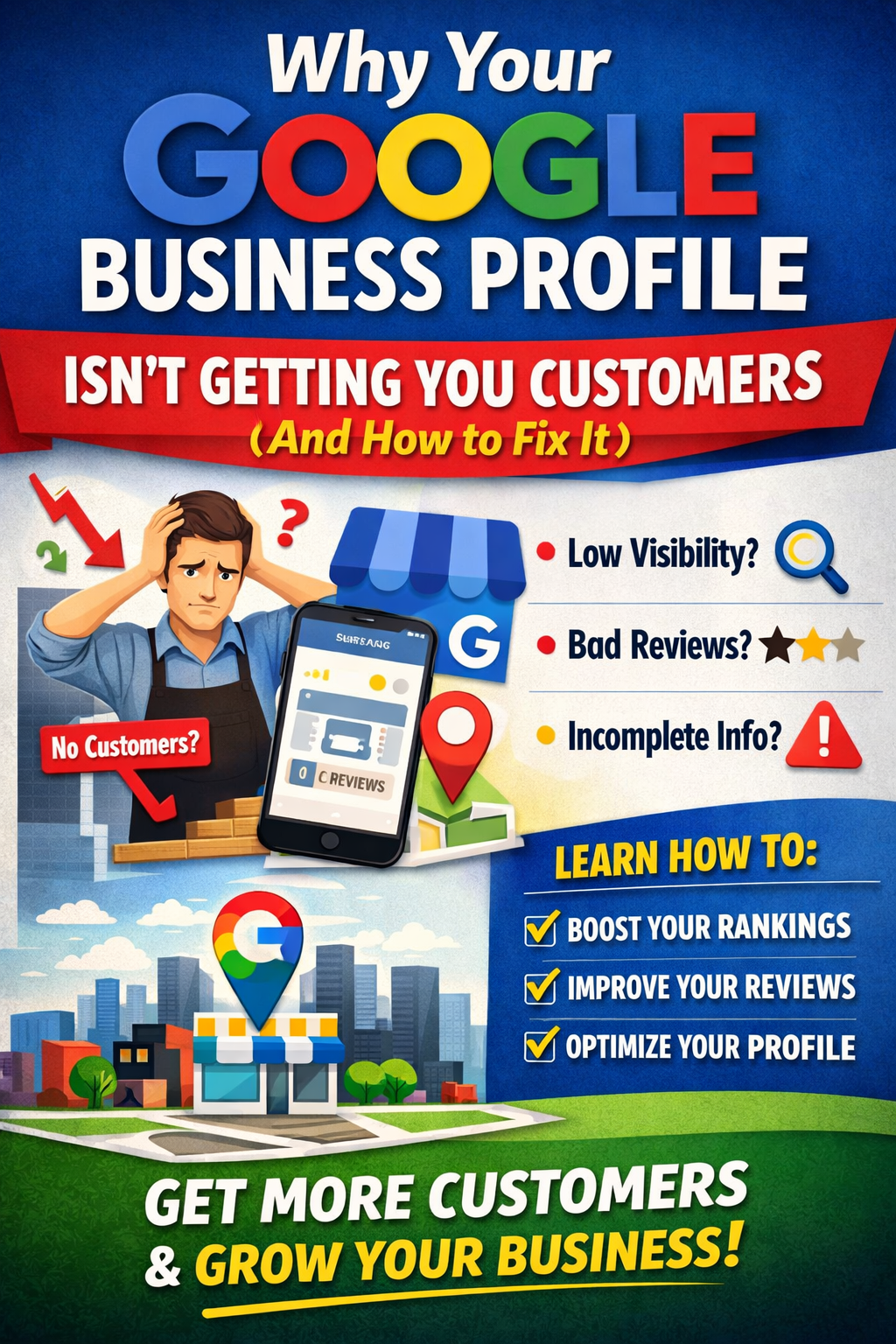 Your Customers Are Searching… But They’re Not Finding You Every single day, potential customers are searching for businesses like yours on Google. The real question is are they finding you, or are they choosing your competitors? Most business owners believe that simply having a Google Business Profile is enough. But the reality is, an unoptimized profile can quietly cost you visibility, traffic, and revenue without you even realizing it. If your phone isn’t ringing, your website isn’t getting clicks, or your foot traffic feels inconsistent… your Google presence may be the missing piece.